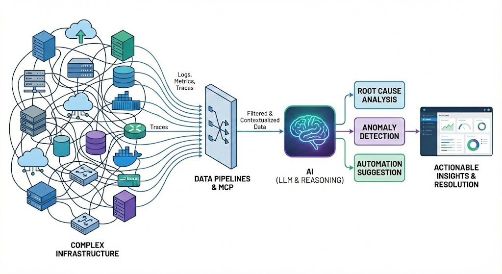 Başlangıç olarak troubleshooting Agent olarak kullanmak mümkün olabilir. Loglardan yakalanan hataları analiz ettirebilir, LLM’den gelecek olan cevaba göre next step olarak MCP ile ilgili sistem üzerinde daha detaylı inceleme yaptırabilir ve tüm bunun sonucunu kurumsal ticket sistemizde bir mühendisin incelemesi için paylaştırabilirsiniz.