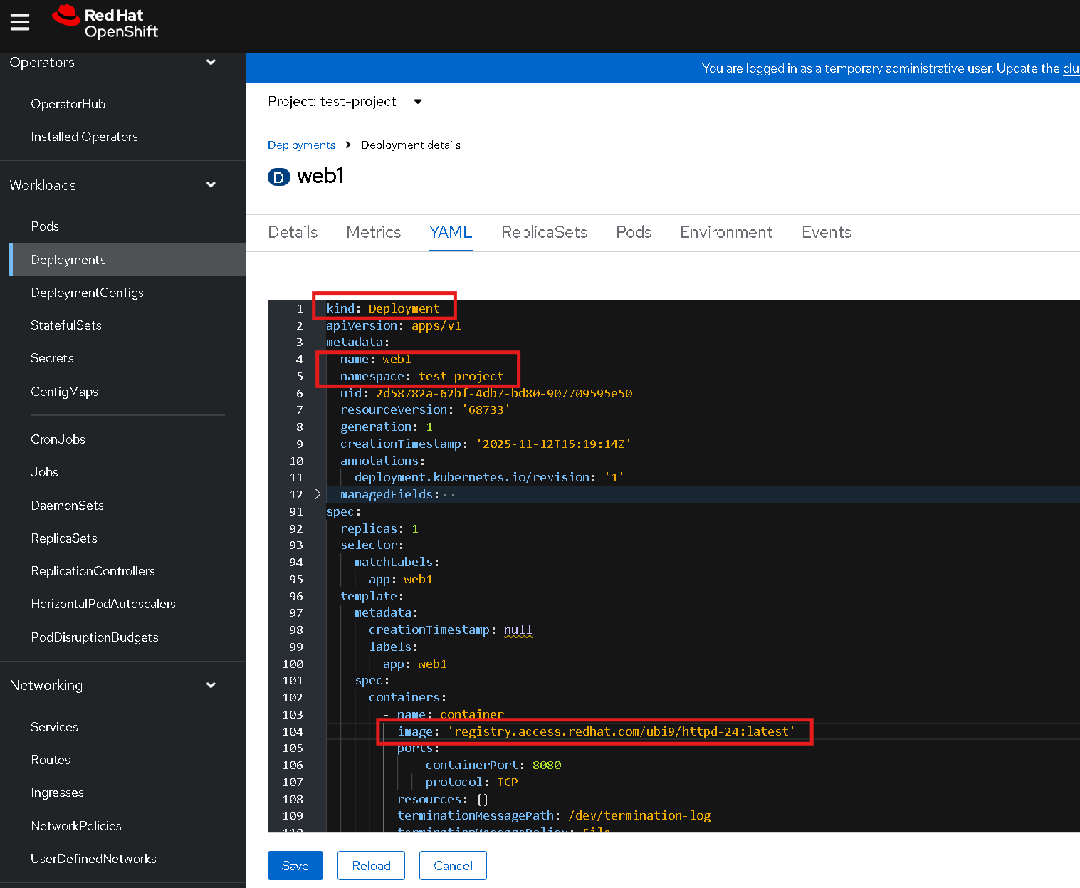 Container imajı olarak “registry.access.redhat.com/ubi9/httpd-24:latest” imajı kullanılabilir..: