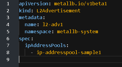 - L2Advertisement: L2 protocolü kullanarak "IPAddressPool" dan gelen bir IP'yi tanımlar.