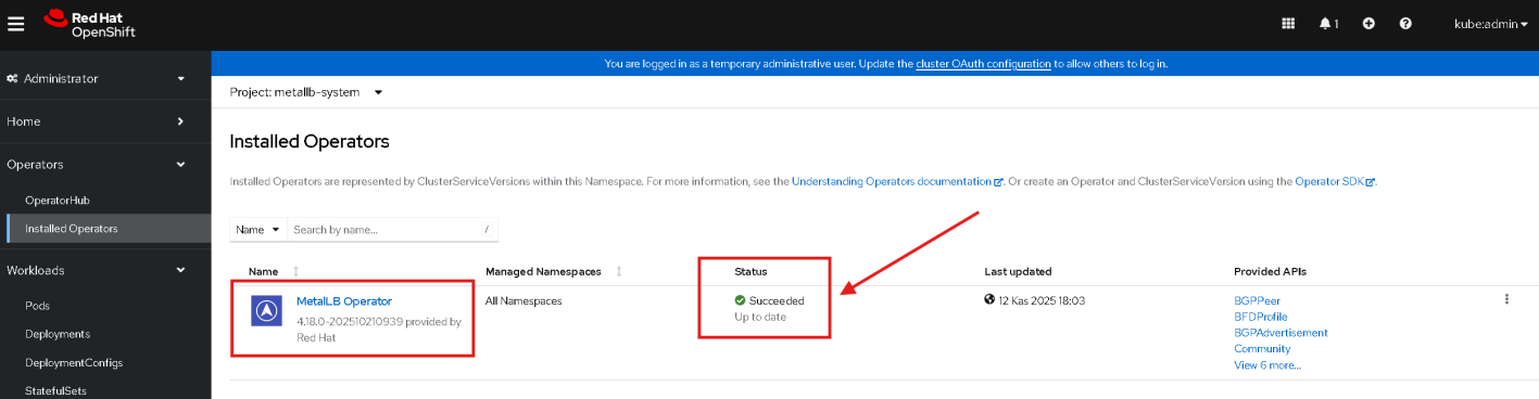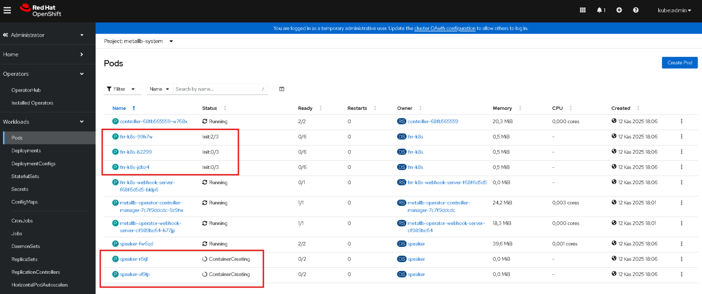 OpenShift 4.18 MetalLB ile LoadBalancer Servisi