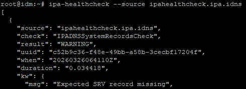 ipa-healthcheck --source ipahealthcheck.ipa.kdc