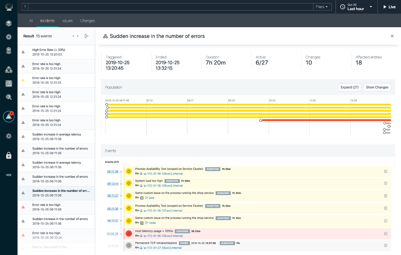 By detecting incidents, issues, and changes, Instana provides comprehensive visibility into your services and infrastructure's health, stability, and configuration.