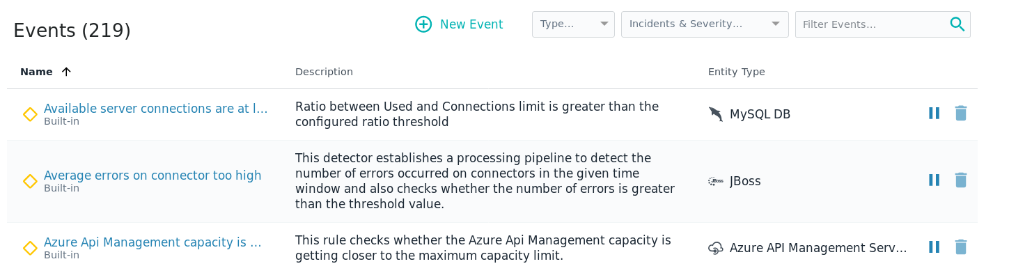 Instana detects three types of events: incidents, issues, and changes. Here's a brief overview of each: