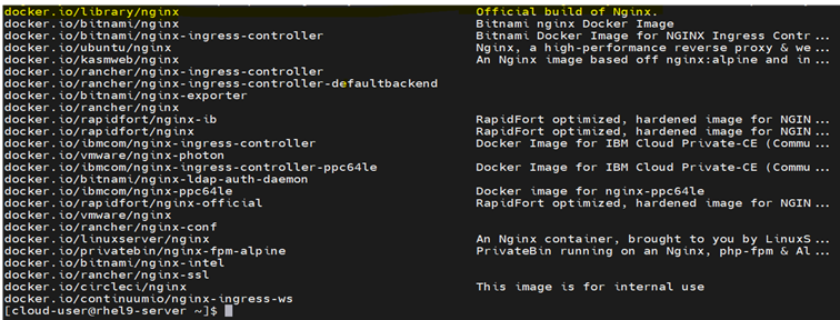 We received a lengthy output. We can find the repository along with its descriptions here. For example, since the repository we used is the official image in the yellow section, we downloaded this image by default.