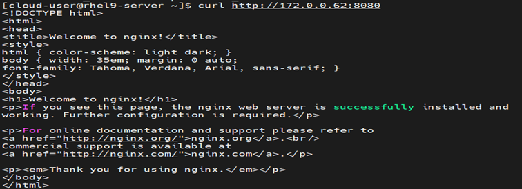 5. You can use this command to test the container. After the private IP address, we accessed it by entering the redirected port.