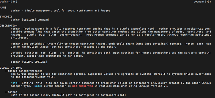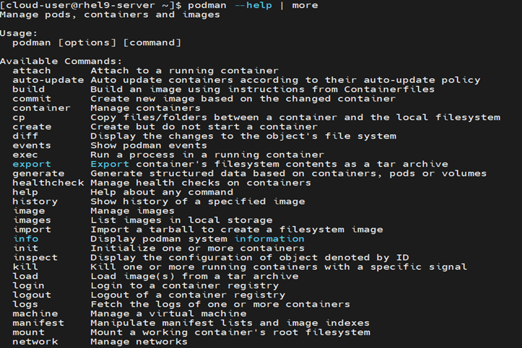 You can also familiarize yourself with the subcommands of Podman for more information: