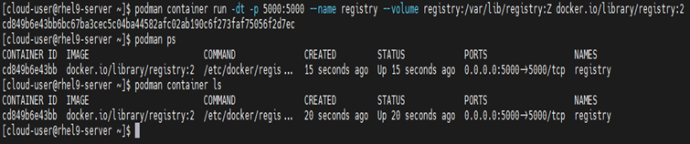 Ø podman container run -dt 5000:5000 --name registry --volume