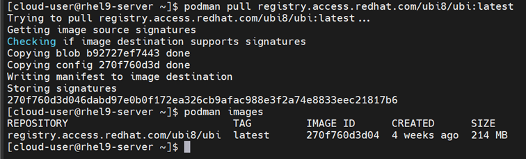 Ø Podman pull registry.access.redhat.com/ubi8/ubi:latest