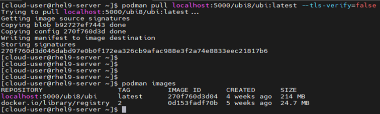 1. Pull the latest ubi8 image from the registry.access.redhat.com registry: