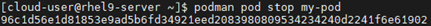 9. We can use the "podman pod stop" command to stop the pod and all the containers within it.