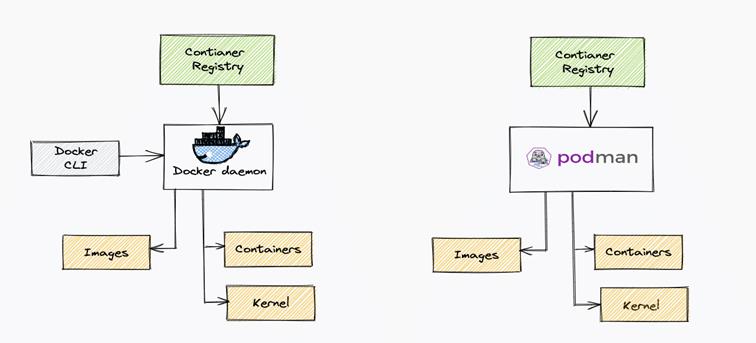 Podman provides an alternative container engine to Docker for managing containers on Linux systems. There are some key differences between Podman and other container engines like Docker: